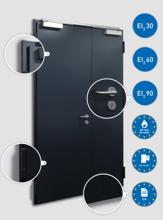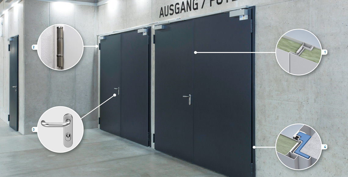 The same applies for the details, such as barrier-free sill variants with inconspicuously mounted lowerable floor seals. The single models are ideal for installation in emergency and escape routes – while dual versions satisfy particularly stringent soundproofing requirements.