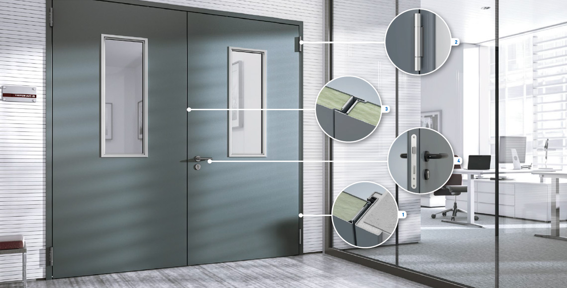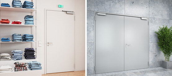 A flush door concept includes a flush centre rebate (3) on double door units, which is standard on both the NovoPorta Plano and NovoPorta Premio ranges. The same holds true for the highly flexible configurability including all options for construction projects. A choice of various options and additional features is also available for Plano, enabling you to configure the doors to suit your exact requirements.
