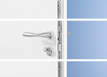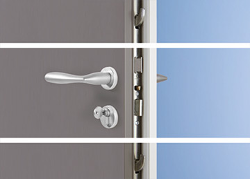 The special thermally separated structure with sturdy inside frame and high performance foam insulation enables NovoPorta ISO Plus to withstand even extreme differences in climate. Bitterly cold outside, snug and warm inside: Not a problem with this door. Added to which, it fits accurately, keeps out the driving rain, and is resistant to wind loads, thanks to the standard self-engaging multiple locks with master lock and two reinforced roller pins that pull the door panel in tight to the seals – every time the door is closed. Further proof of the door’s quality: Turning the handle upwards by as much as 90° can further increase this contact pressure in extreme weather conditions, e.g. very strong wind.