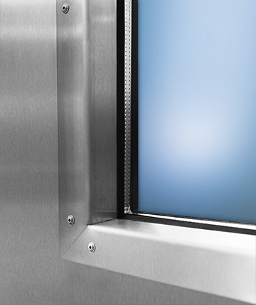 What makes this door special, however, is not just the fact that it is carefully manufactured in dedicated production halls set up specifically for the purpose. Despite its ability to withstand and resist even acids or alkaline cleaning agents, it is still truly lovely in appearance. With its attractive polished or hammer tone surface finish it is bound to attract attention in any commercial environment. And it comes complete with features ranging from glazing to magnetic contacts that surely leave nothing to be desired.