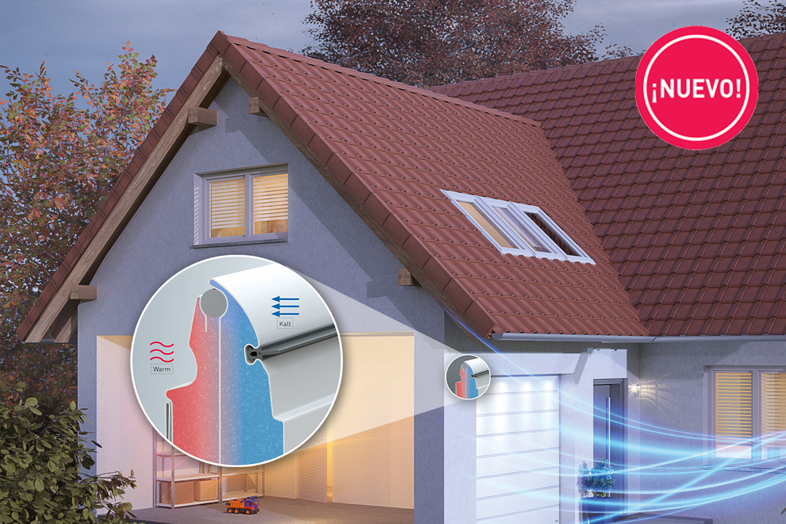 El sistema opcional de listones de empaquetadura y aislamiento mejora las ya de por sí buenas prestaciones de las puertas de garaje seccionales de doble pared Novoferm E®. Hasta un 15%* más aislamiento térmico gracias a la optimización térmica del marco por tres lados para el montaje detrás del vano de la puerta. Montaje fácil y rápido gracias a los perfiles encajables y con clips, compatibles con todas las puertas de garaje seccionales Novoferm E®. El set de marcos térmicos contribuye activamente a optimizar el balance del edificio.