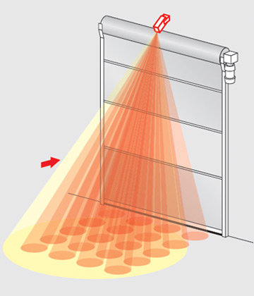 Cortina fotoeléctrica Una cortina fotoeléctrica posee un campo de detección mayor y por lo tanto ofrece más seguridad que una fotocélula. Esta forma de detección es especialmente apropiada para transportes de tamaños muy diferentes.