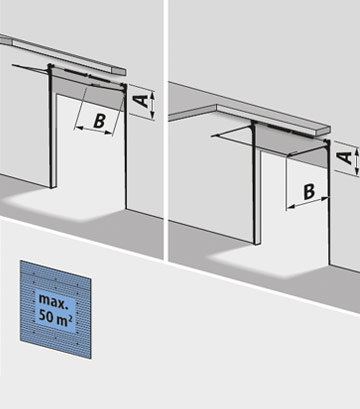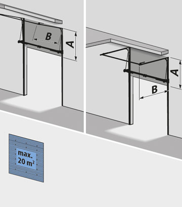 T 450 (B45) Sistema con guía normal (estándar) A = 430-510 mm, B= altura libre + 650 mm