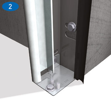 Herraje del suelo El herraje del suelo garantiza la correcta unión del carril con el suelo. El herraje y el perfil distanciador unidos aseguran la correcta distancia entre los carriles guía.