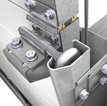 Bisagra lateral doble Novoferm utiliza una bisagra lateral doble para las puertas con vanos superiores a 5 metros de anchura. Esto garantiza el funcionamiento uniforme también de las puertas pesadas.
