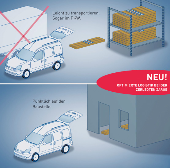 Pedido hasta las 9:00 horas - realización en 6 días Al séptimo día de efectuarse el pedido en el almacén de la región. Entrega desde el almacén de la región según ruta conocida. Posibilidad de envío directo desde la fábrica el séptimo día tras la realización del pedido: a partir de un metro de carga combinable con artículos normalizados. Marcos desmontados directamente al destinatario + 3 días.