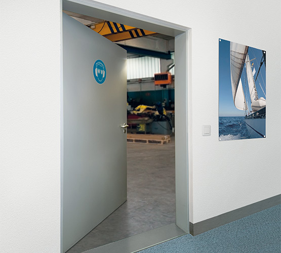 Las áreas ruidosas deben estar separadas acústicamente de las áreas de oficina de trabajo diario. La nueva Puerta Novoferm Insonorizada DB-1 typ52 es la solución perfecta: La sólida chapa de acero con un aislamiento acústico especial y si se requiere el doble suelo inferior, producen un impresionante índice de reducción de sonido, de hasta RW = 52 dB.